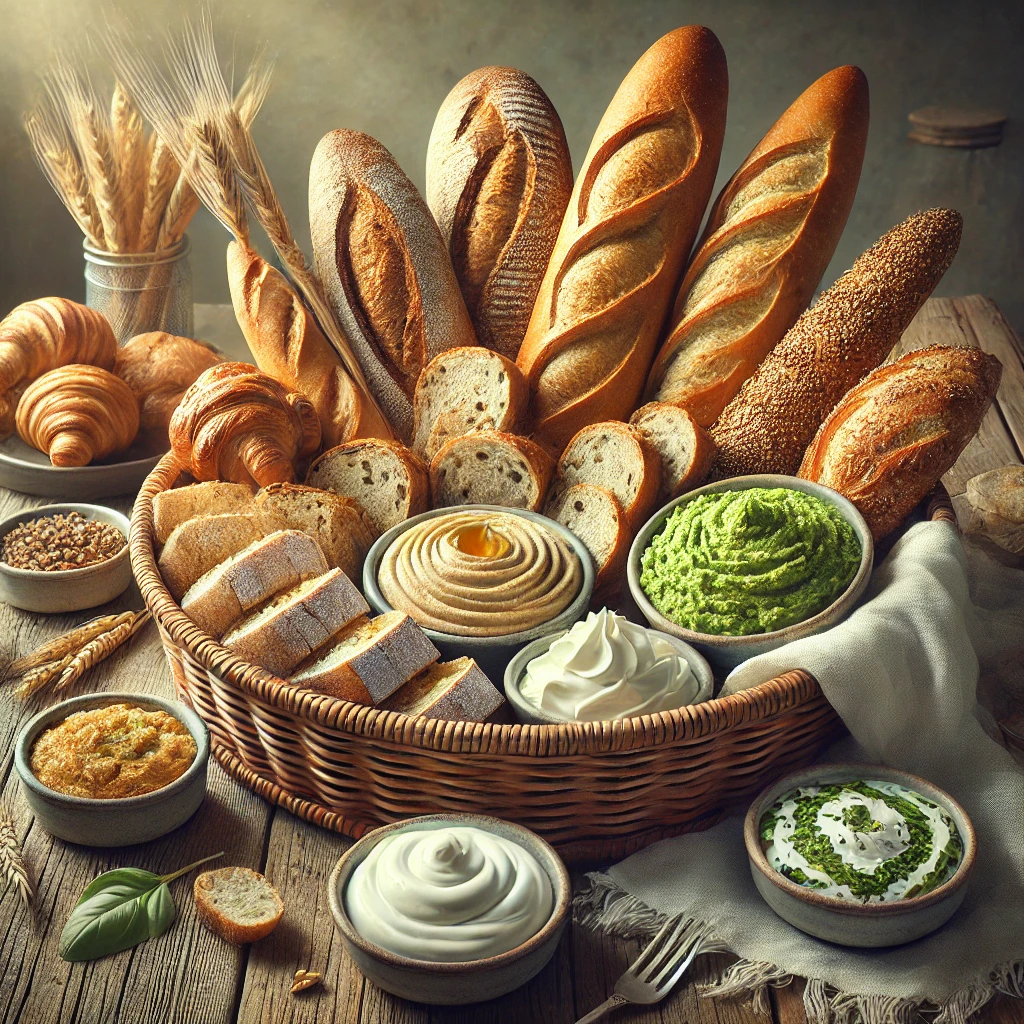 빵과 딥 소스를 함께 제공하면 간단하면서도 배부른 메뉴를 완성할 수 있습니다. 바게트, 치아바타, 크루아상 등 다양한 빵을 준비하고, 함께 즐길 수 있는 딥으로는 허머스, 아보카도 딥, 사워 크림, 크림 치즈 등을 곁들입니다. 여기에 바질 페스토와 같은 풍미 깊은 소스를 추가하면 고급스러움을 더할 수 있습니다.