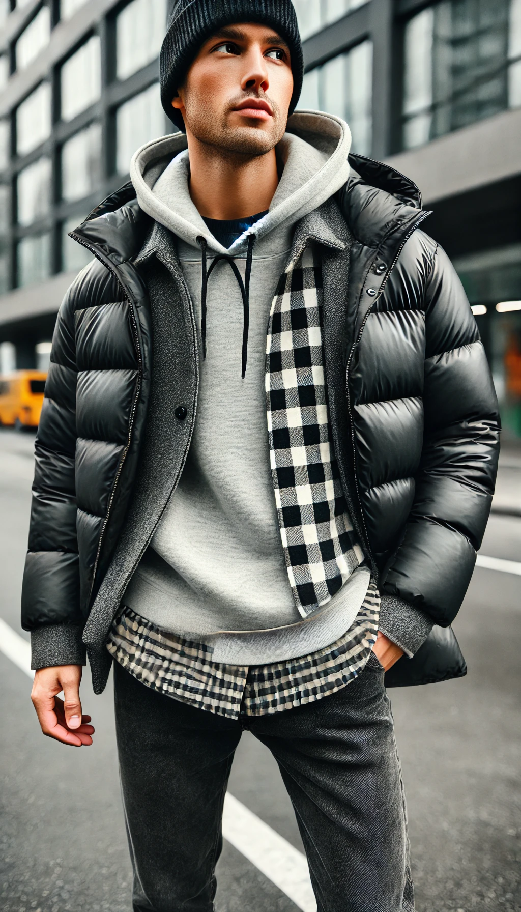 예를 들어, 그레이 후드티에 체크 셔츠를 겹쳐 입고 블랙 경량 패딩을 입으면 무난하면서도 개성 있는 캐주얼 겨울 룩이 완성됩니다.