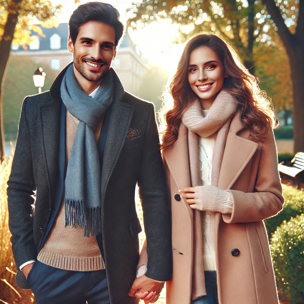 - 따뜻한 옷을 입고 낮 시간대 야외 산책.