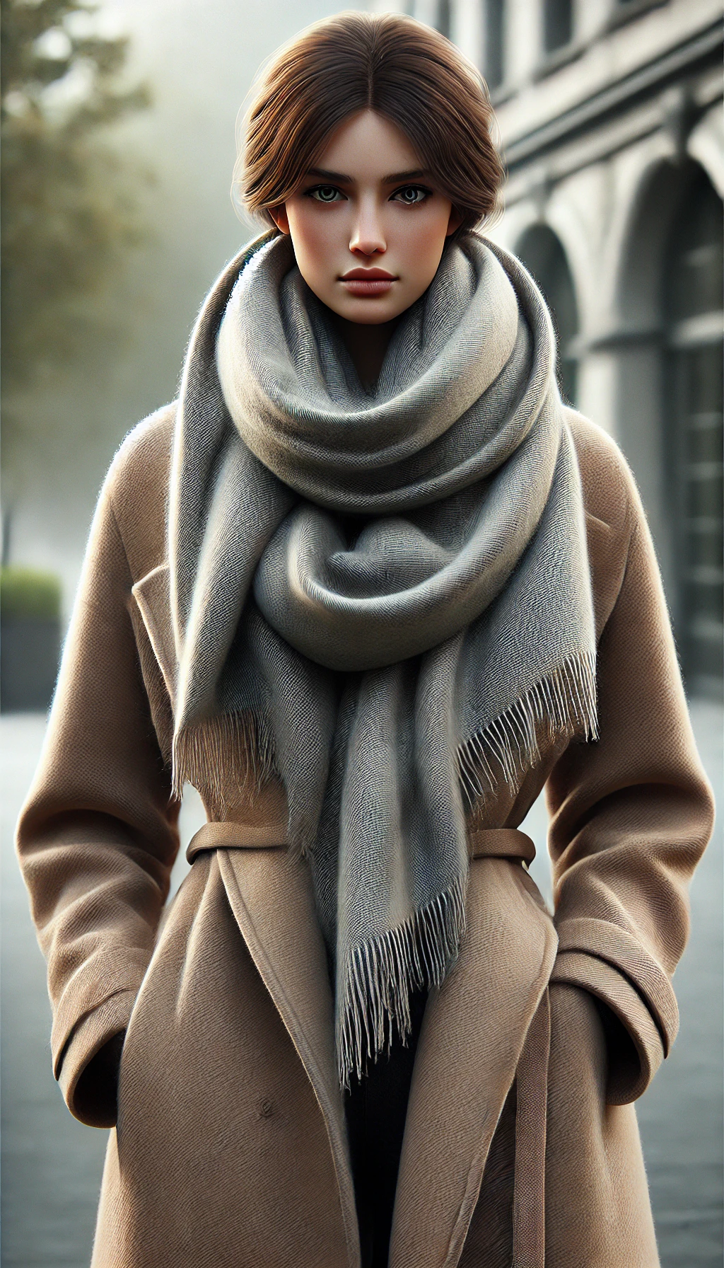 - 풍성하게 감싸기: 큰 폭의 스카프를 목에 두른 뒤 끝부분을 고르게 펼쳐 어깨 위로 내려오도록 스타일링 하면 부드럽고 따뜻한 느낌을 줍니다. 특히 롱코트와 함께 착용하면 무게감이 있는 겨울 패션이 완성됩니다.