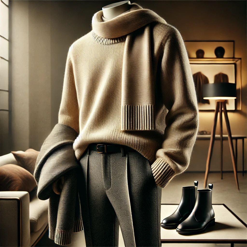 캐시미어 스웨터와 슬랙스로 편안한 겨울 룩