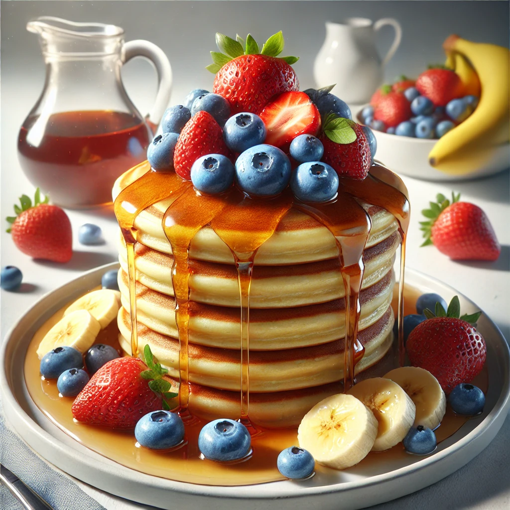 - 플레이팅 팁: 팬케이크를 탑처럼 쌓아 높이를 주고, 과일을 흩뿌려 자연스러운 느낌을 강조하세요. 메이플 시럽을 한 겹씩 바르면 촉촉하고 달콤한 맛이 더해지면서도 시각적으로 풍부한 플레이팅을 연출할 수 있습니다.