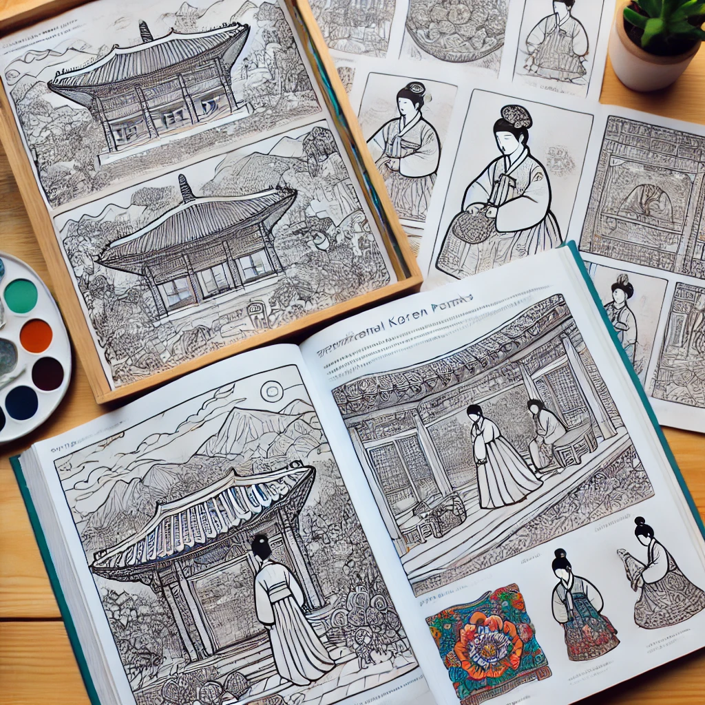 - 상세 설명: 한국의 전통 예술을 쉽고 재미있게 체험할 수 있는 컬러링북입니다. 각 페이지에는 전통 회화 작품의 특징과 역사적 배경이 설명되어 있어, 외국인들이 한국의 문화와 예술을 이해하는 데 도움을 줍니다. 창의력을 자극하고, 한국 문화에 대한 흥미를 유발하는 훌륭한 교육 도구입니다.