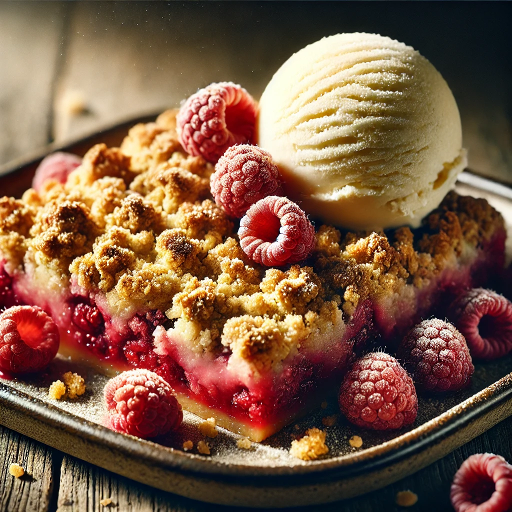 라즈베리 크럼블은 새콤한 라즈베리와 바삭한 크럼블 토핑의 조화로 환상적인 디저트 브런치 메뉴가 됩니다. 바닐라 아이스크림을 곁들이면 크럼블의 따뜻한 식감과 아이스크림의 차가운 조화가 일품입니다. 크럼블은 쉽게 만들 수 있는 디저트 중 하나이며, 과일을 다양하게 바꿔가며 새로운 맛을 시도해 볼 수 있습니다.