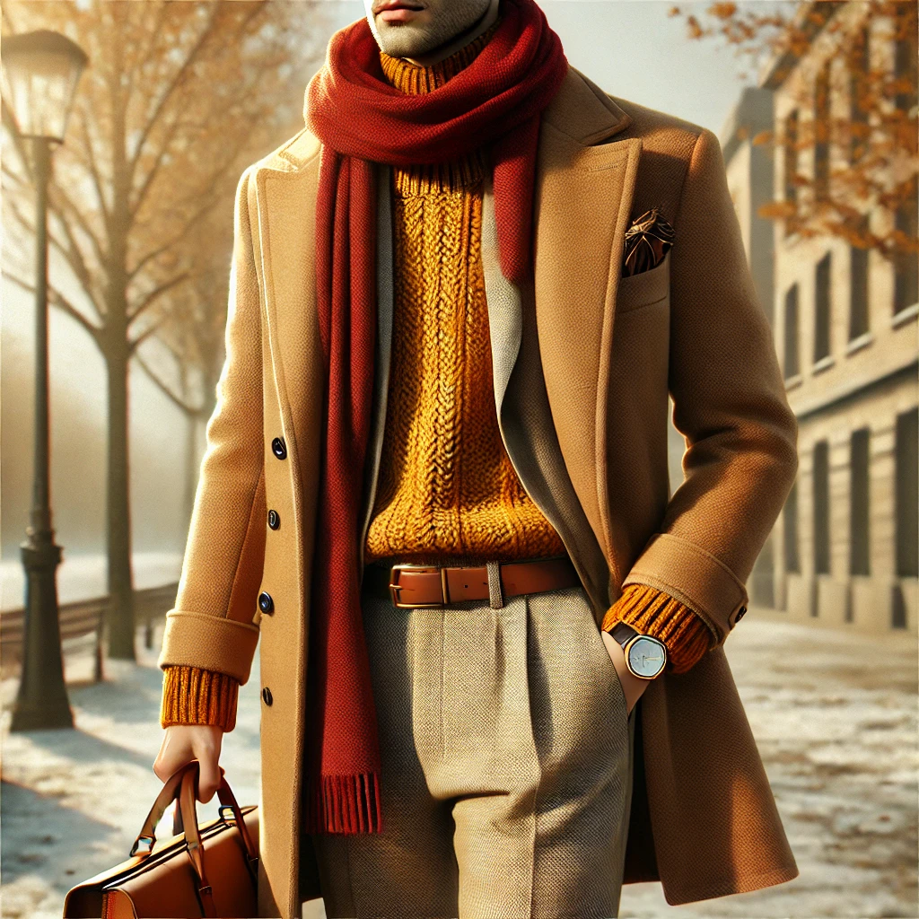 겨울철에도 밝고 따뜻한 색감은 필요합니다. 브라운, 베이지, 카멜과 같은 따뜻한 색조는 부드럽고 친근한 이미지를 만들어줍니다. 이와 함께 머스타드 옐로나 버건디 컬러를 포인트로 활용하면 전체적인 룩에 생동감을 더할 수 있습니다.