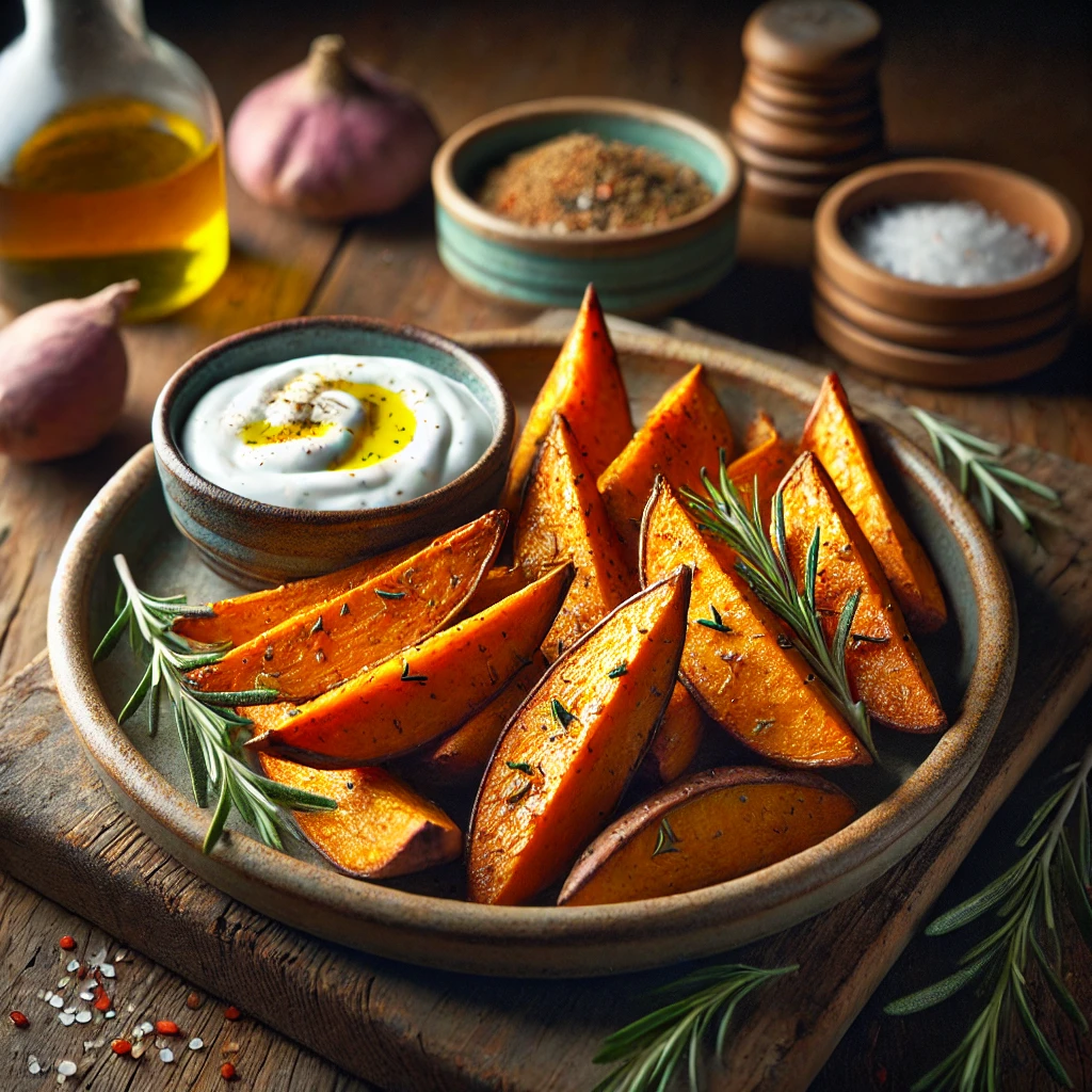 고구마 구이와 요거트 디핑 소스