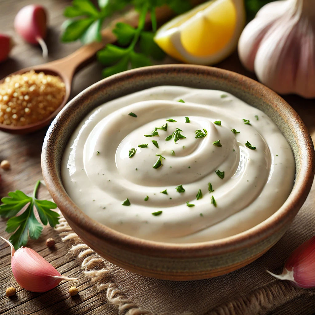 - 타히니와 요거트를 섞은 후, 레몬즙과 다진 마늘을 넣어 잘 섞어줍니다.