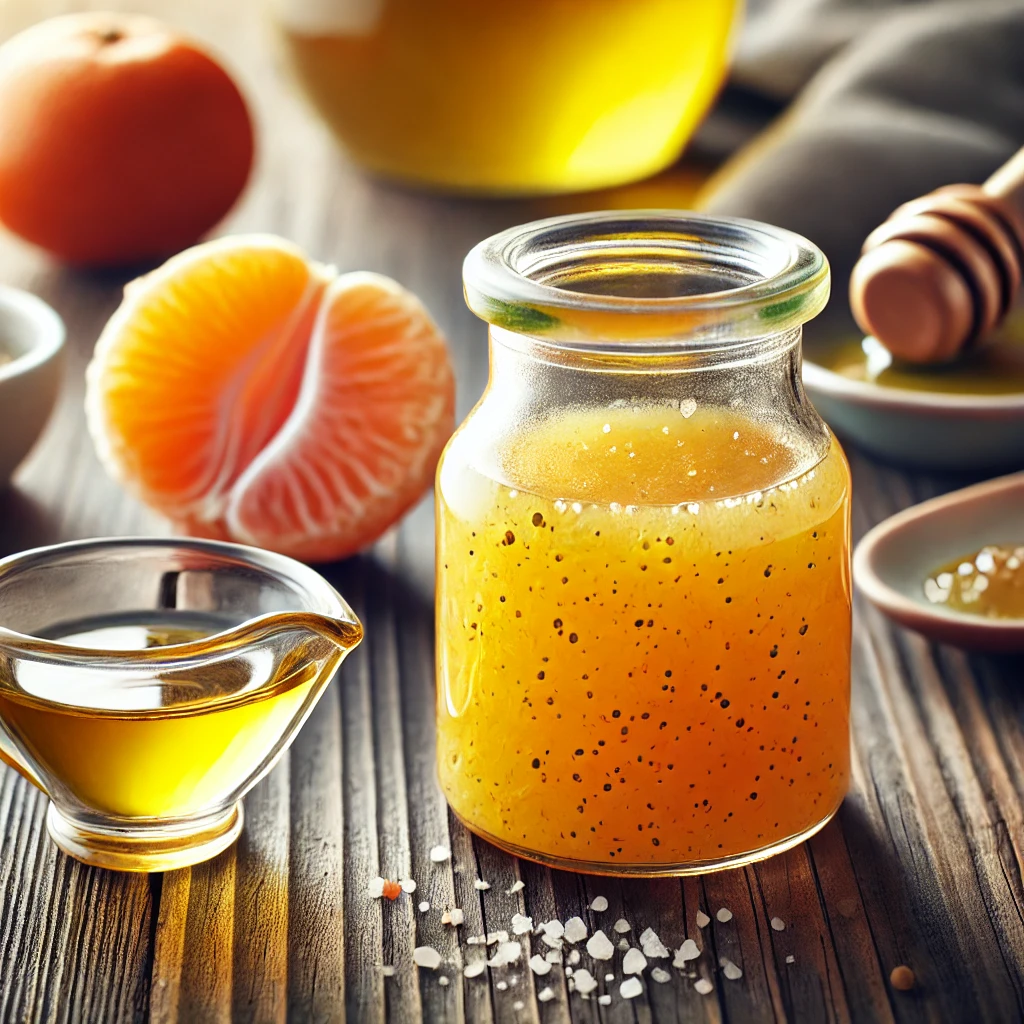 - 감귤즙에 사과식초, 꿀을 넣어 잘 섞어준 후 올리브 오일을 천천히 넣으며 섞어줍니다.