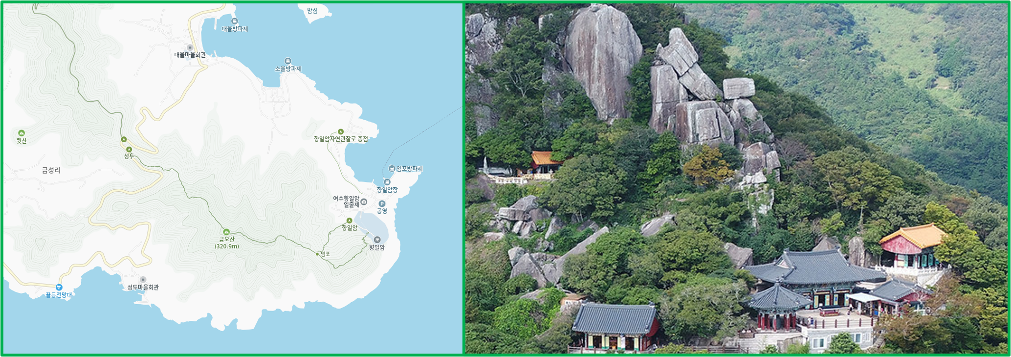 여수에 위치한 향일암은 바다를 내려다보며 해돋이를 감상할 수 있는 절경의 사찰입니다. 암자에 오르기 위해 300여 개의 계단을 올라야 하지만, 정상에서 바라보는 바다와 해맞이는 그야말로 장관입니다. 명상과 마음의 평화를 찾고 싶은 분들에게 추천합니다. 향일암에서는 새벽녘 붉게 물드는 바다와 함께 마음의 평온을 느낄 수 있습니다. 특히 새해 첫날 많은 이들이 이곳에서 해돋이를 보며 새해 소망을 비는 명소로 유명합니다. 사찰 주변에는 맛있는 여수 특산 음식을 파는 작은 식당들도 있어 여행의 즐거움을 더해줍니다.