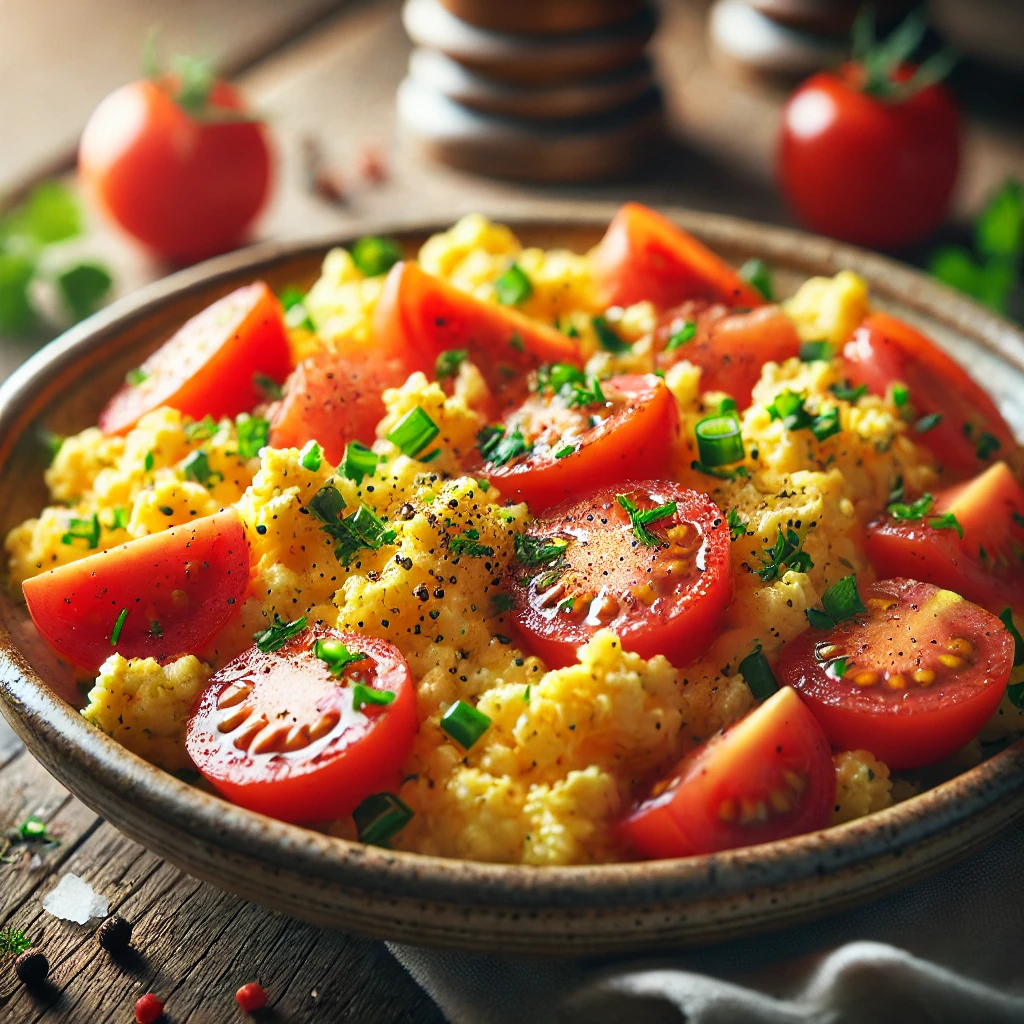 토마토 스크램블드 에그는 상큼한 토마토와 부드러운 계란의 조화가 잘 어우러져 아침이나 브런치로 완벽한 메뉴입니다. 특히 토마토의 산미가 계란의 고소함을 살려주어 입맛을 돋우기 좋습니다.