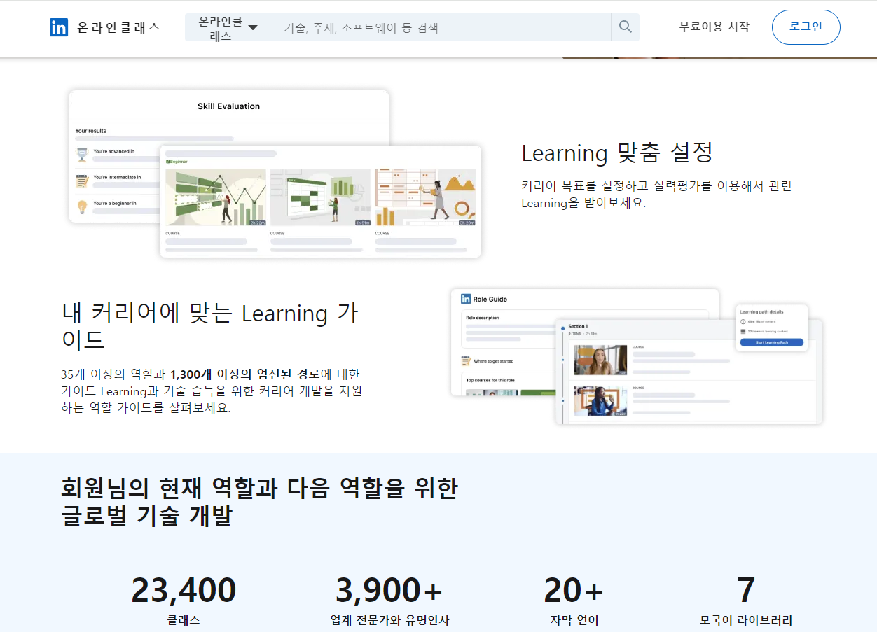 LinkedIn Learning(이전 Lynda.com)은 비즈니스 및 기술 관련 강의에 중점을 둔 플랫폼으로, 직무 관련 기술 습득을 원하는 전문가들에게 적합합니다. LinkedIn 프로필과 연동되어 학습 내용을 이력서에 추가할 수 있는 점이 장점입니다.