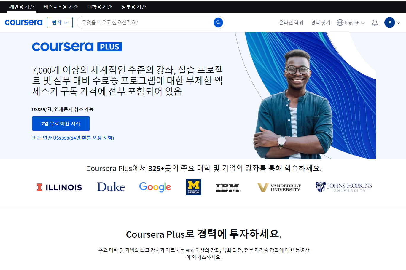 - 세계 유수의 대학과 기업과의 제휴 강의 제공