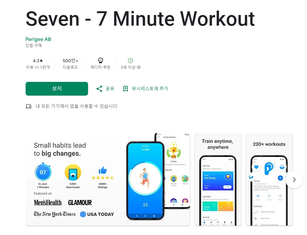Seven – 7분 안에 완료할 수 있는 고효율 운동