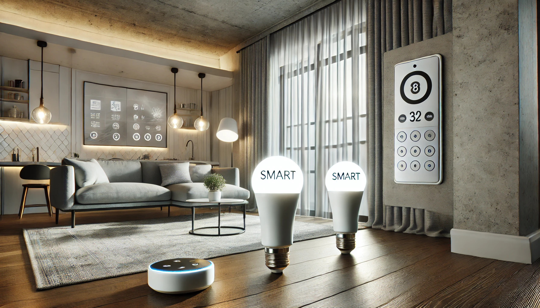 스마트 조명과 커튼을 제어하기 위해 스마트 전구 및 전동 커튼을 설치합니다. 스마트 전구는 일반 전구 소켓에 장착하여 설정이 가능하며, 전동 커튼은 전용 모터를 설치하여 음성으로 열고 닫을 수 있습니다.
