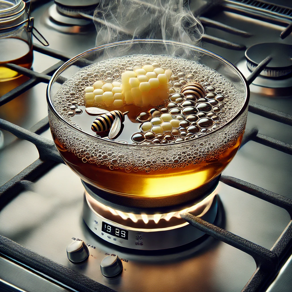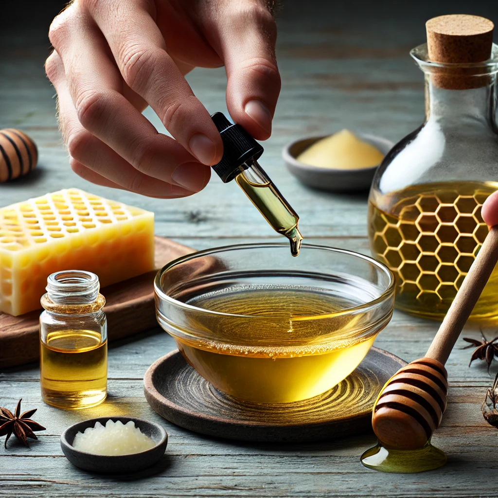 비즈 왁스와 캐리어 오일을 내열 그릇에 담아 중탕 방식으로 천천히 녹입니다. 완전히 녹을 때까지 부드럽게 저어 주어 균일한 혼합 상태를 만듭니다. 중탕은 직화보다 안전하고 재료를 고르게 가열할 수 있습니다.