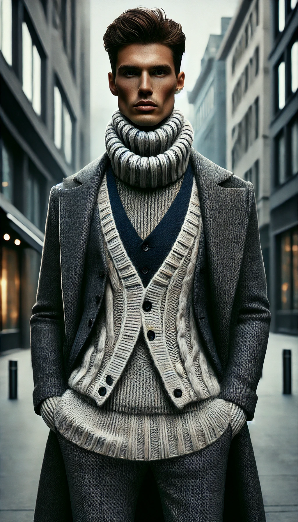 실제 착용 사례: 한국에서는 니트나 터틀넥을 레이어드하여 입는 경우가 많습니다. 한 예로, 터틀넥 위에 니트 베스트를 입고, 그 위에 코트를 걸치는 식의 패션이 흔히 볼 수 있습니다. 최근에는 이러한 레이어드 룩에 적합한 슬림한 니트와 다양한 길이의 아우터가 인기를 끌고 있습니다.