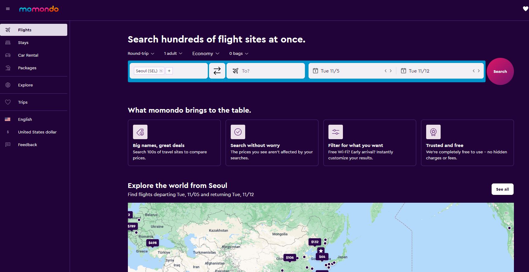 - 모모도(Momondo): 여러 항공사와 저가 항공사까지 종합적으로 가격을 비교해주며, 전 세계적으로 많이 사용되는 사이트 중 하나입니다.