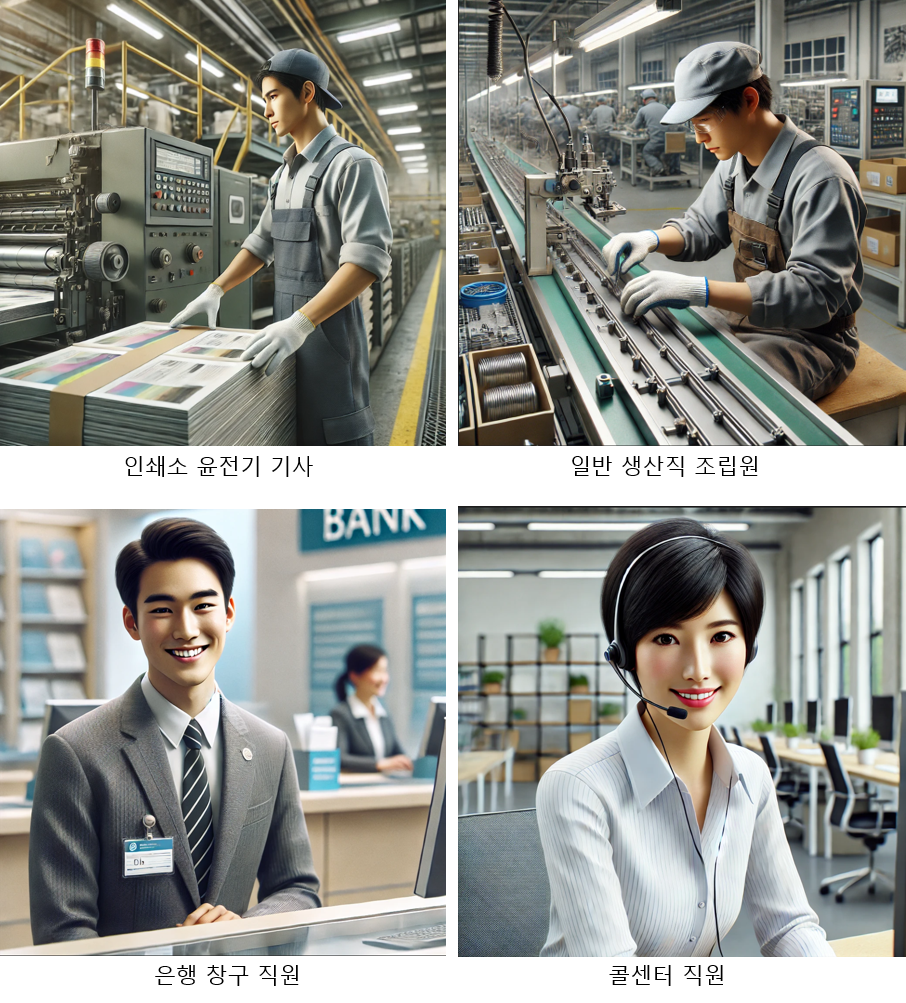 • 영향: 데이터 입력 직원, 문서 관리직, 간단한 회계 업무를 담당하는 사람들은 자동화 소프트웨어와 AI 도구에 의해 점차 대체될 것입니다. 자동화 시스템은 24시간 작동이 가능하고 오류를 최소화하며 속도가 빠르기 때문에, 비용 절감과 효율성 향상 측면에서 기업들이 이러한 전환을 가속화할 것입니다.
