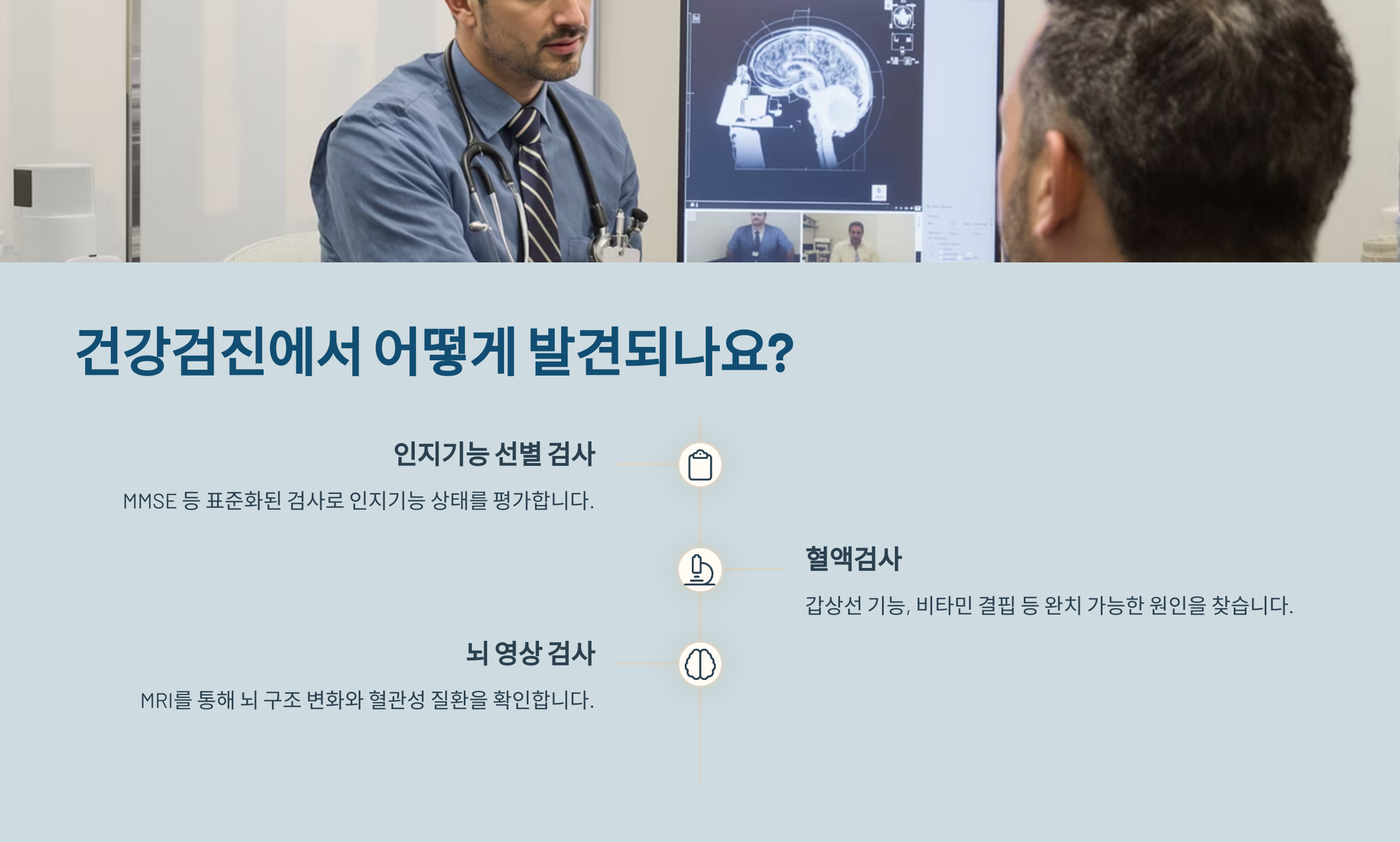 | MRI | 뇌 위축 및 혈관 변화 확인 |
